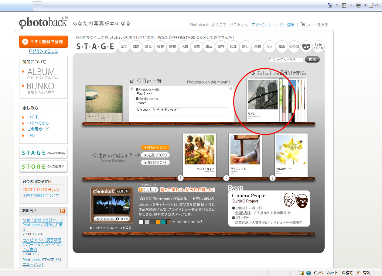 Photobackで作ったBUNKO「リズム」が、STAGEにて、selection入りしました。