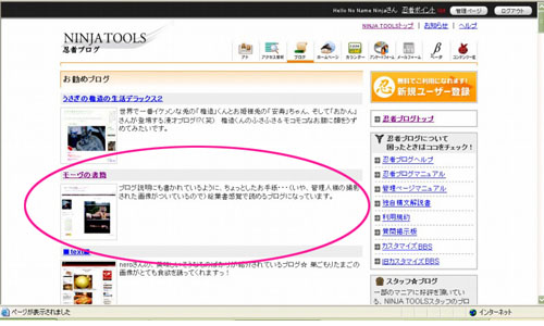 いつもお世話になっているninjaブログのtopページで、