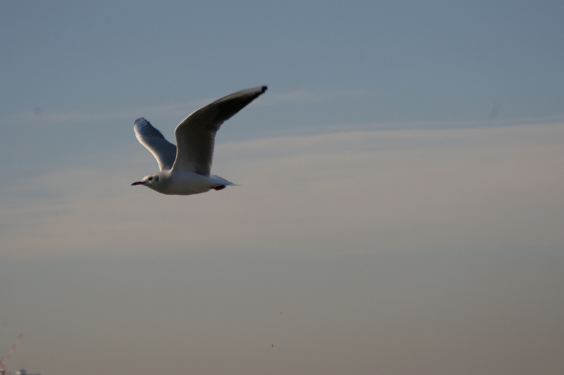 動きを止めて滑空するカモメ。