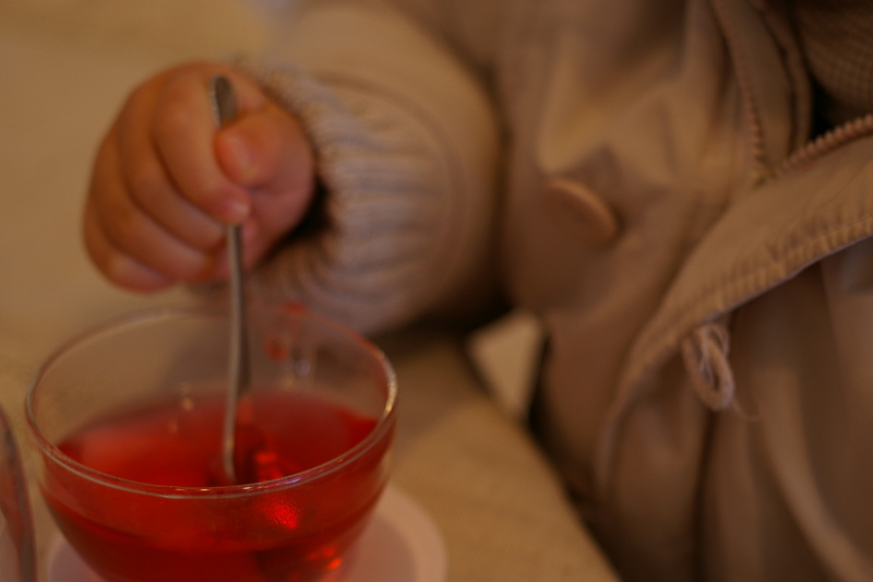 そこで、蜂蜜入りハーブティを試飲しています*