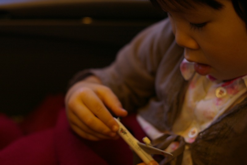 乗務員さんのくれたおもちゃに夢中になってしまった。