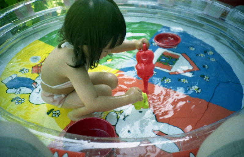 ビニールプールって、大人も足をつけていると、けっこう涼しくて、冷房いらないですね。