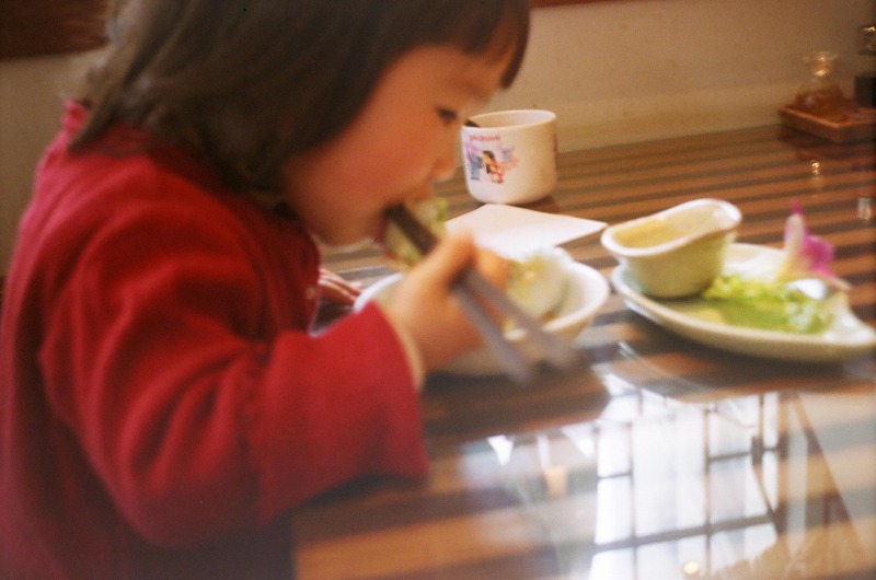 ベトナム料理店で生春巻きを食べるちびです。
