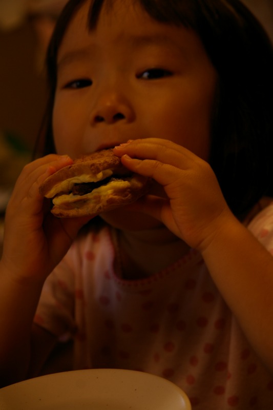 早くタイヤキを食べたいがために、ちびは手を洗いに洗面所へ直行した。