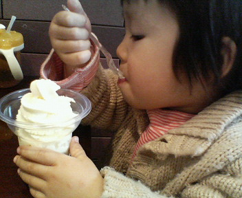 2枚目の写真は、おやつ中!ソフトクリームですね。