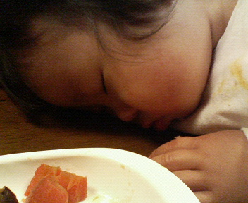 最後は、食事中に寝てしまったちび。